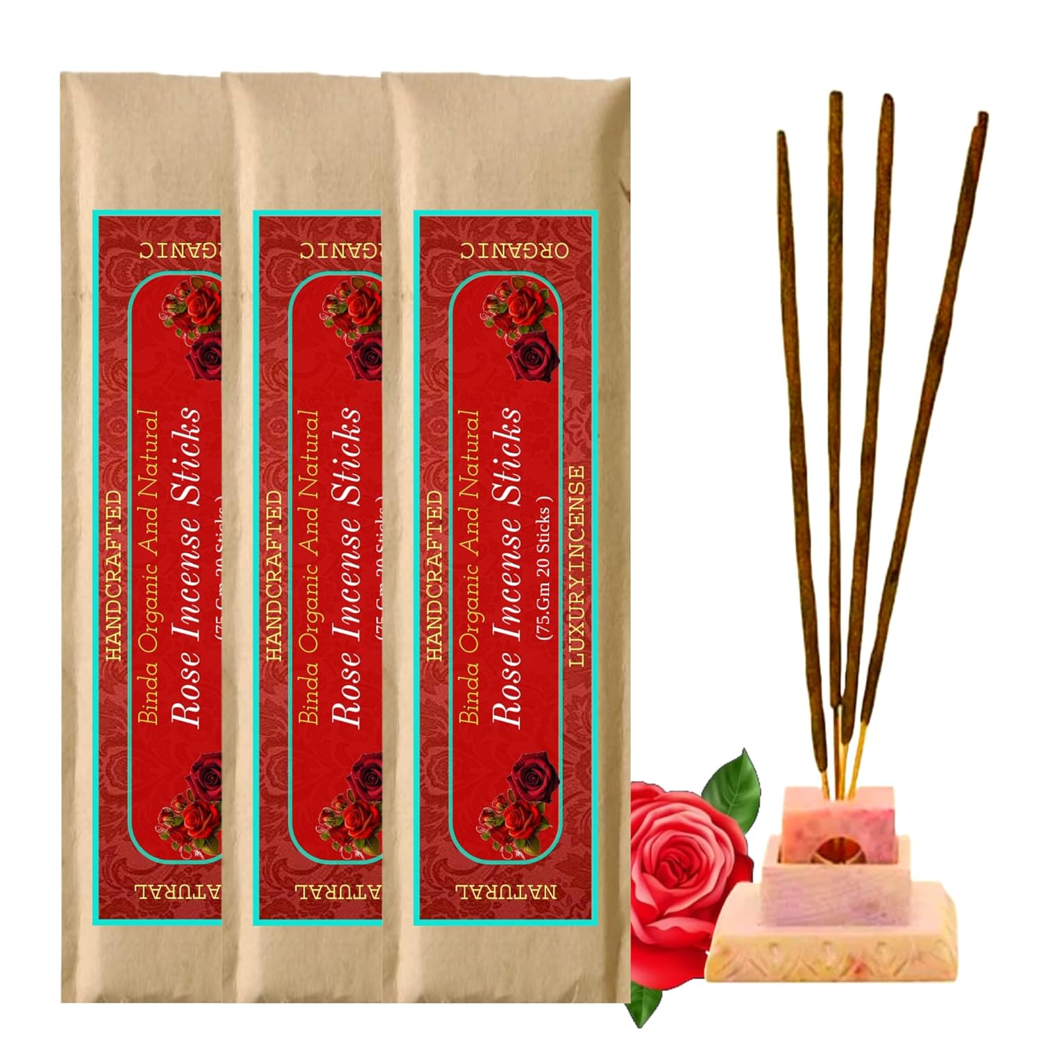 Luxury Rose Incense Sticks (Gulab Agarbatti) | Pack of 3 | Natural Long-Lasting Fragrance for Puja, Prayer & Meditation
