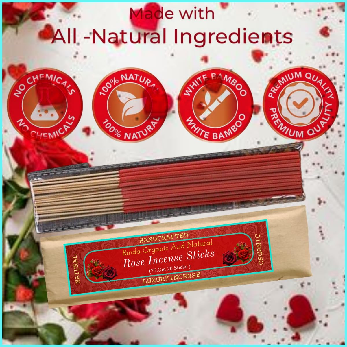 Premium Rose (Gulab) incense sticks with a soothing floral aroma. Crafted from natural ingredients for long-lasting fragrance, perfect for puja, prayer, meditation, relaxation & good sleep 🌹