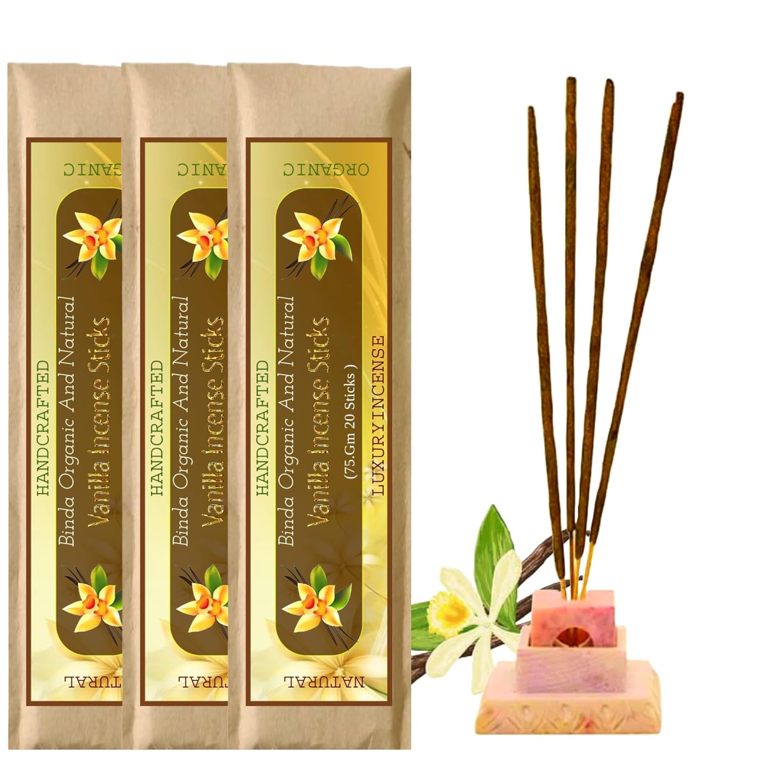 - PACKAGE CONTENTS: Three premium packs of Vanilla incense sticks, with approximately 20 sticks per pack for extended use